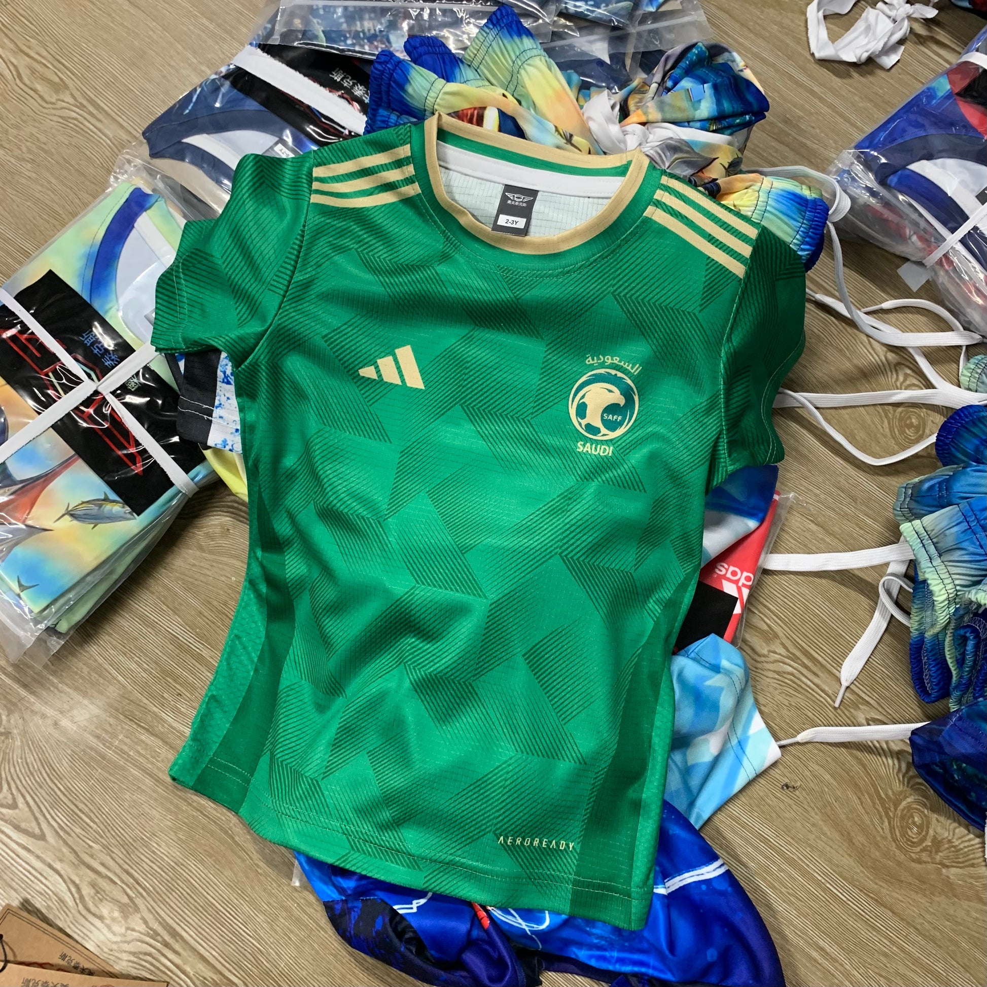ফুল বডি প্রিন্ট আজীবন কালার গ্যারান্টি প্রিমিয়াম কোয়ালিটি সৌদি আরবের কিডস জার্সি