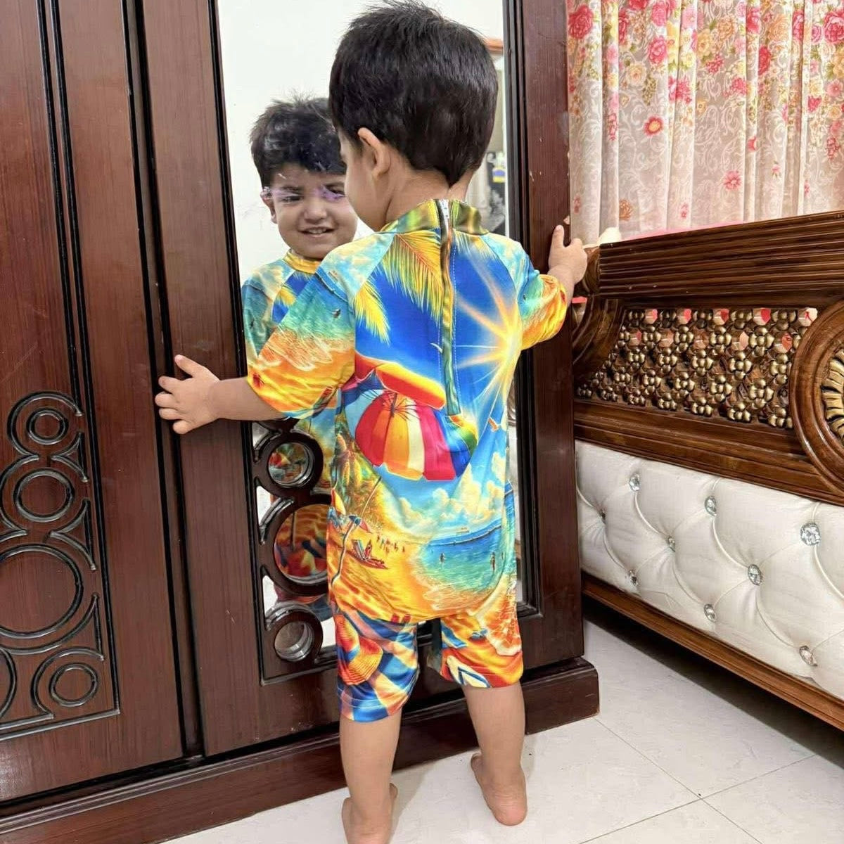 SUNNY BEACH HALF SLEEVE SWIMMING SUIT WITH CAP ( 2Y TO 14YEAR)